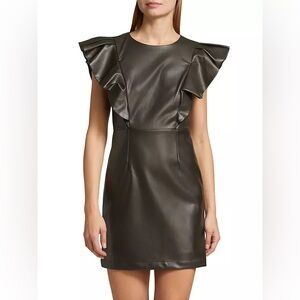 [en saison] layne faux leather ruffle shoulder mini dress olive XS