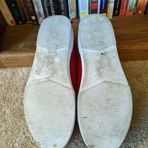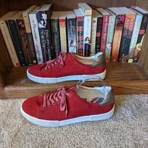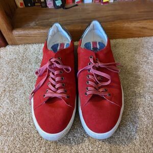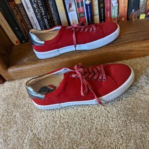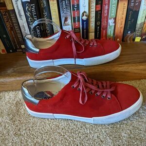 english laundry red suede sneakers white sole silver on heel sz 11 euc