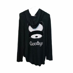 hi - low long sleeve dark gray tee with 'hello' on front and 'goodbye' on back, very soft. Made in the USA. Color in pic 3&4 are closest to actual color.