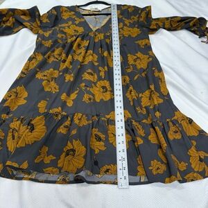entro Dress Womens L Gray Brown Floral Print Ruffled Hem Boho Romantic Dress