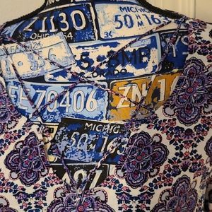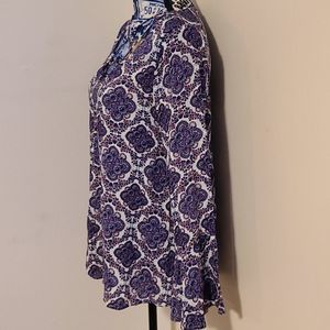 Entro top with criss cross at chest and bell sleeves. Size: Small Pit to pit 17.5" Length neckline to hem 24" B1