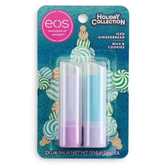 eos Holiday Lip Balm Stick - Iced Gingerbread + Milk & Cookies - 2pk