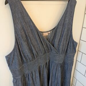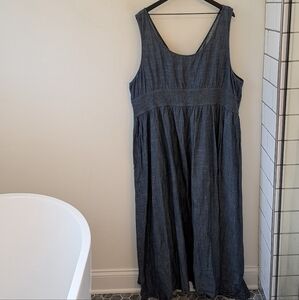 eshakti Women's Blue Chambray Denim Maxi Length V Neck Smocked Dress 5X