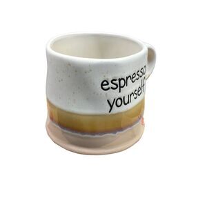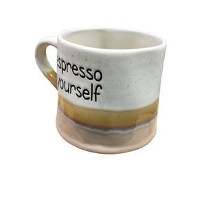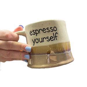 This oversized coffee cup from Spectrum Designz is perfect for expressing your love for coffee and adding a touch of novelty to your morning routine. The round-shaped brown mug features the words "espresso yourself" and can be used for cappuccino, tea, latte, or any hot beverage of your choice. Made of high-quality materials, this coffee mug is both microwave and dishwasher safe, making it practical for everyday use. It is a great addition to your coffee cup collection and perfect for all occasions. Get ready to start your day with a smile with this fun and unique espresso cup.