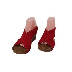 est.1946 womens 4" platform heels elastic straps red color sandals