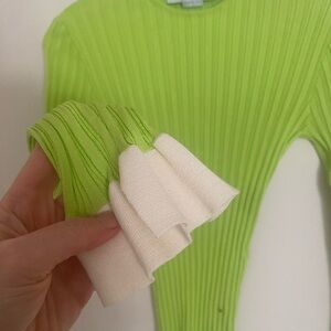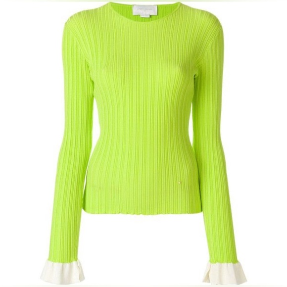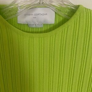 esteban cortazar lime green ribbed sweater with ruffled sleeves size XS Italy