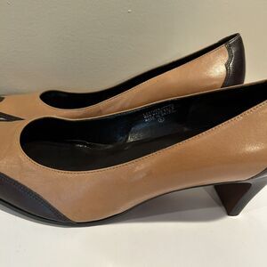 etienne Aigner shoes size 10M two tone leather stacked pumps vintage +wear