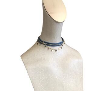 ettika NWOT Denim And Gold Plated Brass Disc Chain Lobster Clasp Choker Necklace