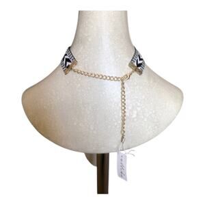ettika NWT Boho Chic Black and White Print with Gemstones Trendy Choker Necklace