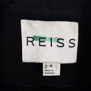 EUC Reiss Lissy Bonded Soft Draped Blazer Jacket in Black Size medium. Black viscose long blazer. Single button closure, fully lined, seriously cool pocket detail In the front. Back has an inverted pleat mid back. The fabric feels so soft, as slippery as satin with awesome fluidity. Excellent pre-owned condition, worn once
