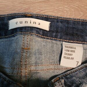eunina Jeans Womens 7 Maxwell Low Rise Skinny Ripped Medium Dark Stretch Denim