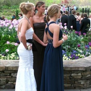 @mommyt22 It's tafitta material. And I am 5'3 i didn't wear too tall of heels