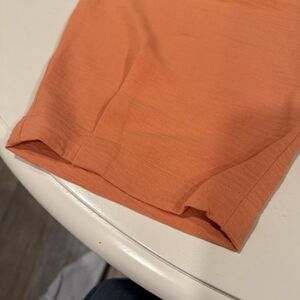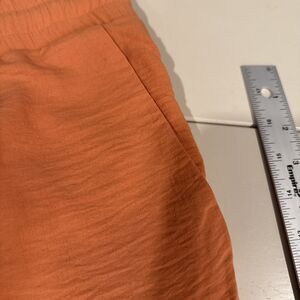 The Madeline Jones Crepe Pants in coral reef color are a stylish addition to any woman's wardrobe. These wide-leg pants feature a high-rise waist with a tie waist detail and elastic waist for a comfortable fit. Made from polyester crepe fabric, they are machine washable for easy care. The pants have a pleated front and pockets for added convenience. Perfect for a relaxed fit and cropped style, these pants in size 1X and waist size 34 inches are designed for plus-sized women looking for a trendy and comfortable pant option.