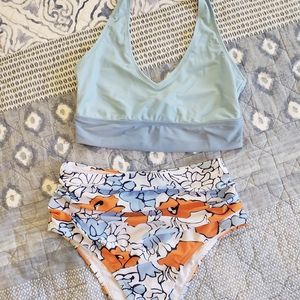 Blue Halter Top and High Waisted Bottoms. New!