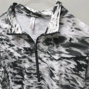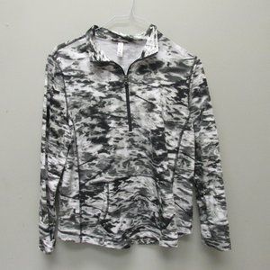 This super cute sweater is in great condition. It’s great for working out or going on a walk. It has a half zipper and 2 pockets in front. The length is 22 inches long.