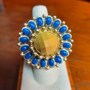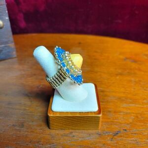 expandable, One Size fits most, Over Sized Blue and Tan Colored Ring