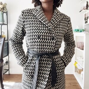 ★ express houndstooth double breasted belted wool coat