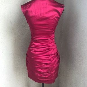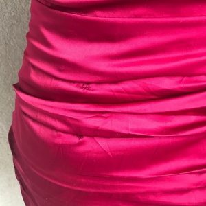 Worn twice. Strikingly flattering. Minor flaws pictures. It's hidden with the ruffles when worn so it barely shows. Had to fix two tiny holes