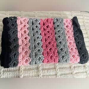 extra long handmade crochet scarf- 80" pink sparkle gray and black- gift