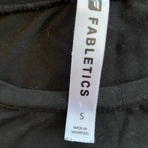 Comfy work out Tshirt by fabletics size small. Measurements are approximate 17 inches from arm oit to arm pit. Shoulder to bottom hem 23 inches. Tag for material is missing but it feels like cotton and maybe a small