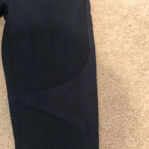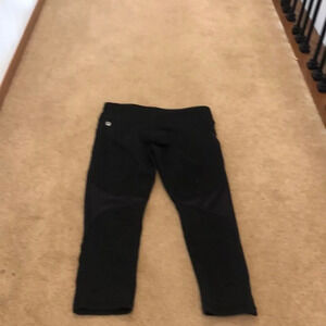 Fabletics Capri leggings. The tags on the inside are ripped out. They are black. But also have some shiny black material in the thigh area.