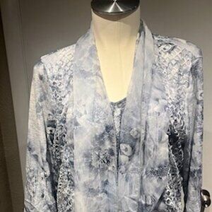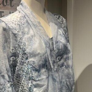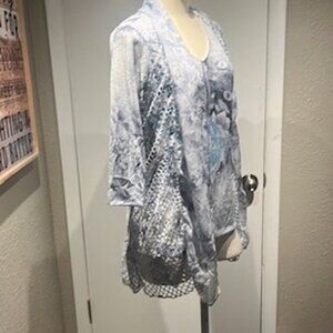 womens cardigan lightweight b;ouse in blue colors lacy sheer and glamorous. simply timeless piece truly one of a kind.
