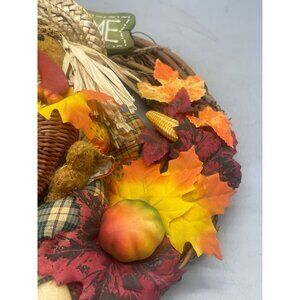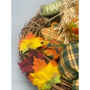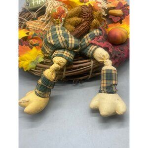 fall thanksgiving wreath harvest time plush turkey orange leaf plaid corn READ