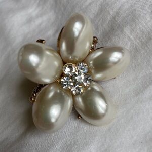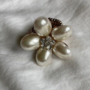 Beautiful faux pearl pedals with silver tone accents and elastic band. The center has faux diamonds.