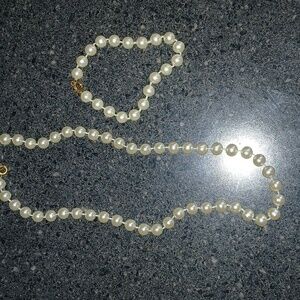 faux pearl bracelet and necklace set with golden clasps. Pearls have always been a favorite since the beginning of time!