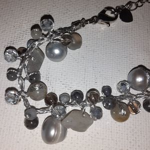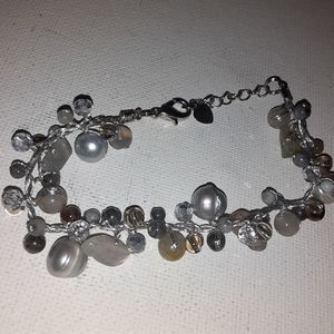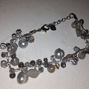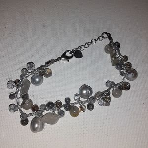 This is a Silvertone bracelet featuring glass and faux pearl beads. All items are negotiable so please feel free to make an offer or add to a bundle for a customized discount.