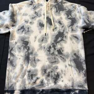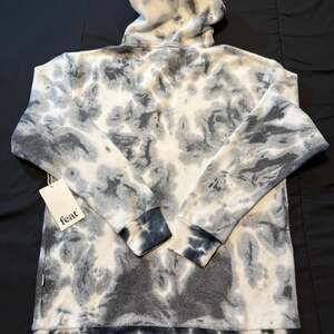 Feat Clothing Gray and White Tie-Dye Hoodie, Size S — Brand New with Tags. This ultra-soft Blanket Blend hoodie features a neutral tie-dye pattern, perfect for cozy lounging or casual streetwear style. Made from a premium blend of 50% Polyester, 38% Cotton, and 12% Rayon for ultimate comfort. Designed in California. Includes a front kangaroo pocket and adjustable drawstrings. Approximate measurements: Pit to Pit 20", Length 24". Brand new with original tags attached. Excellent condition with no flaws.