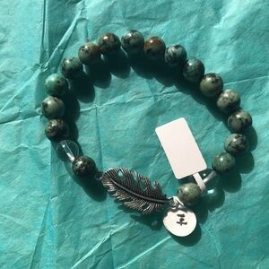 Afr. Turquoise & Clear Quartz stretch bracelet