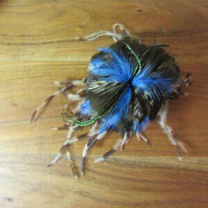 feather flower hair clip or brooch Fascinator hand made by ME! Brown blue (447B)