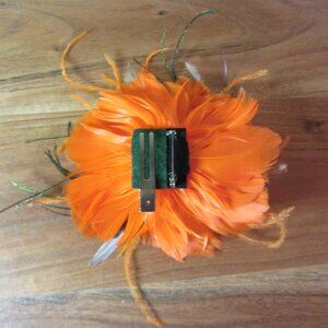 feather flower hair clip or brooch Fascinator hand made by ME! Orange (446A)