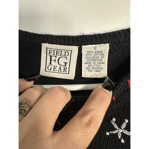field gear vintage christmas winter cardigan long sleeve buttons size small preowned good condition ALL ITEMS have been cleaned washed etc. prior to listing and are stored in a way to keep them clean.