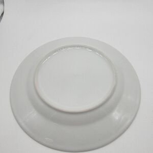 This is a vintage 8" plate depicting a military mascot that was created by the Walt Disney Company. Fifinella was a female gremlin designed by Walt Disney for a proposed film from Roald Dahl's book The Gremlins. During World War II, the Women Air Force Service Pilots (WASP) asked permission to use the image as their official mascot, and the Disney Company granted them the rights.