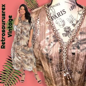 Fig & Vine Leopard Cheetah Print Tassel Caftan Mumu Maxi Dress, Small