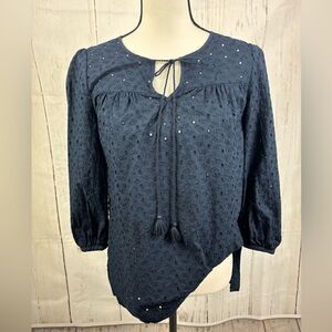 ‼️final must bundle‼️ Brooks Brothers Navy Blue Eyelet Top Blouse Bell Sleeves