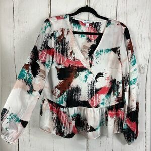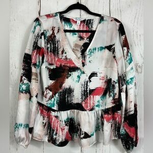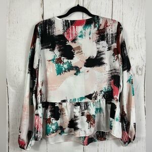 ‼️final must bundle‼️ Nine West Satin Blouse V-neck Ruffled Abstract Print