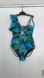 ‼️final price Leaf Print Asymmetrical Shoulder Tummy Control One Piece Swimsuit