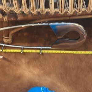 It’s about 8 inches high in the highest part about 24 inches long. Made of metal