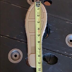 NWOT super cute espadrille slides featuring a bow on the vamp. 1” platform. Leather upper, man made insole, rubber outsole. Hand stitched jute platform. These were designed in Europe and run small so it is advised to order up. Manufacturing error as the sole is marked 7 but lining is marked 6 1/2. Better suited for a 6 1/2 so I have listed as such but please refer to pic showing measurements if you are unsure on fit.