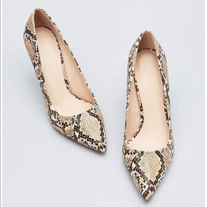 A great pair of heels- perfect for work and for going out. A brown, taupe mix. Textured snakeskin. Skinny heel with a height that is both flattering yet comfortable. These are a size 6.5 but run big. I wear a 7/7.5 and they fit me perfectly. Soles are padded and comfy. Great for work, very professional