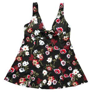 fit 4 ur Thighs Black/Floral Print One Piece Women's Dress Swimsuit Size 8