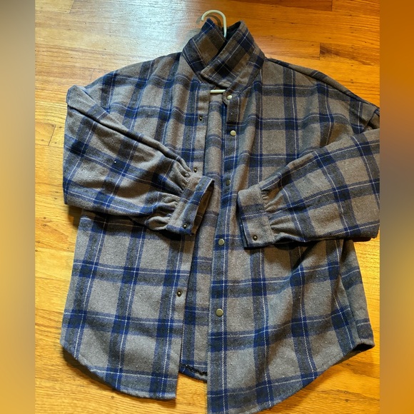 medium purple/brown flannel; thrifted
