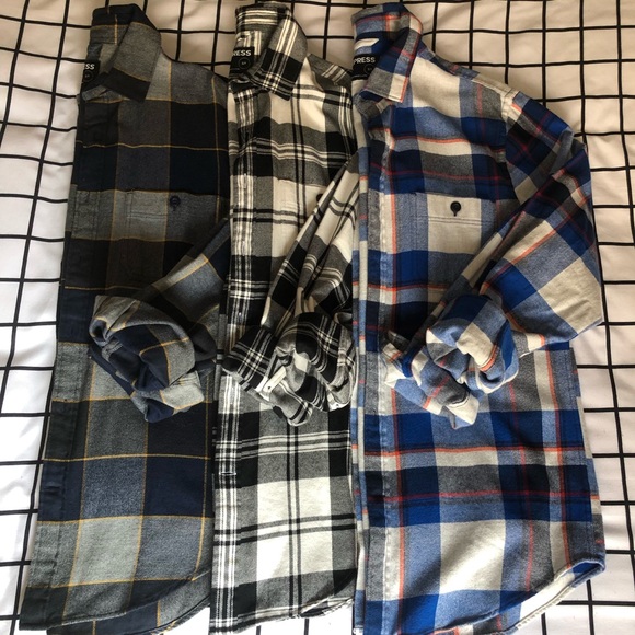 Express flannels. Selling the three. All size small. If want one separate send offer and which one you’d like , and will accept if found appropriate. All without tag but all worn once or twice.