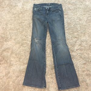 Size 25 "A" pocket seven for all mankind jeans. Distressed look. Flared. Inseam : 30 in / length: 38 in.