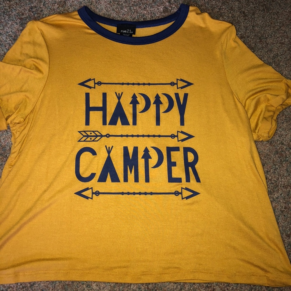 never worn, “happy camper” shirt. a size Large but fits as a Small as well