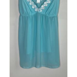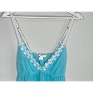 flora by Flora Nikrooz Floral Sleeveless V-Neck Babydoll Chemise Sky Blue M
