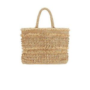 florabella Gold Coast Tote Bag Natural Beige Raffia Summer Beach NWT $253